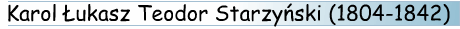 Urodził się: 2 lutego 1804 roku (czwartek) w Strzeblewie (par. Solca Wielka, gm. Strzeblew, pow. łęczycki) Rodzice: - Ignacy Dominik Kajetan Starzyński (1773-1846) - Konstancja Jarnowska (1774-1830)