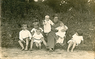 lewej: można zobaczyć bliźniaki Leszka i Zbigniewa trzymane na ręku przez mamę,