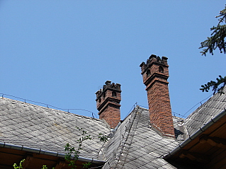 Po prawej stronie zdjęcie komina, gdzie jest umieszczona data budowy (na lewym).